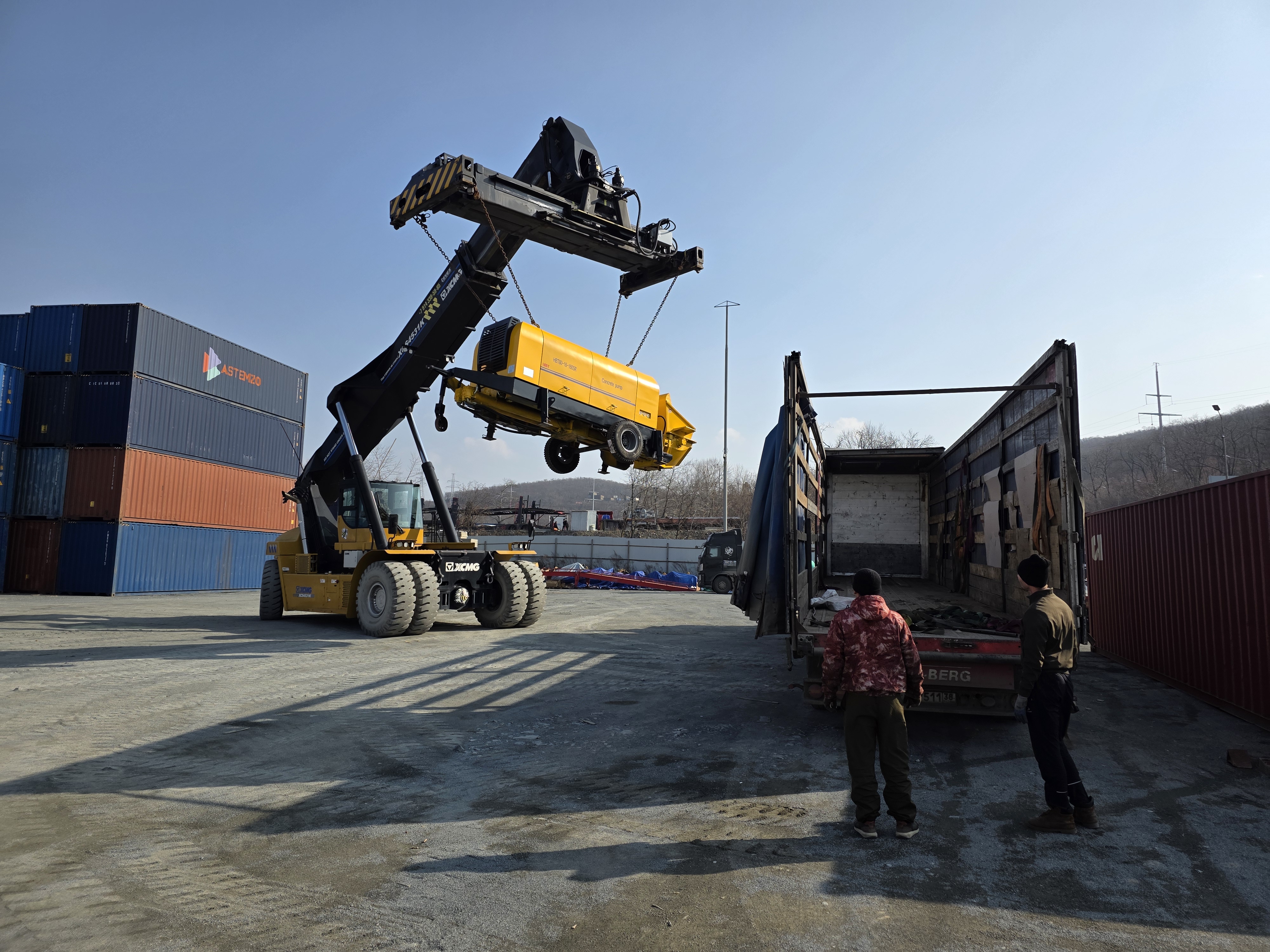 6 ноября 2025г . из Владивостока отгружено два дизельных бетононасоса HBT 80-16-160SR (Cummins/Rexroth) на п. Таксимо для ООО "Полюс Строй"
